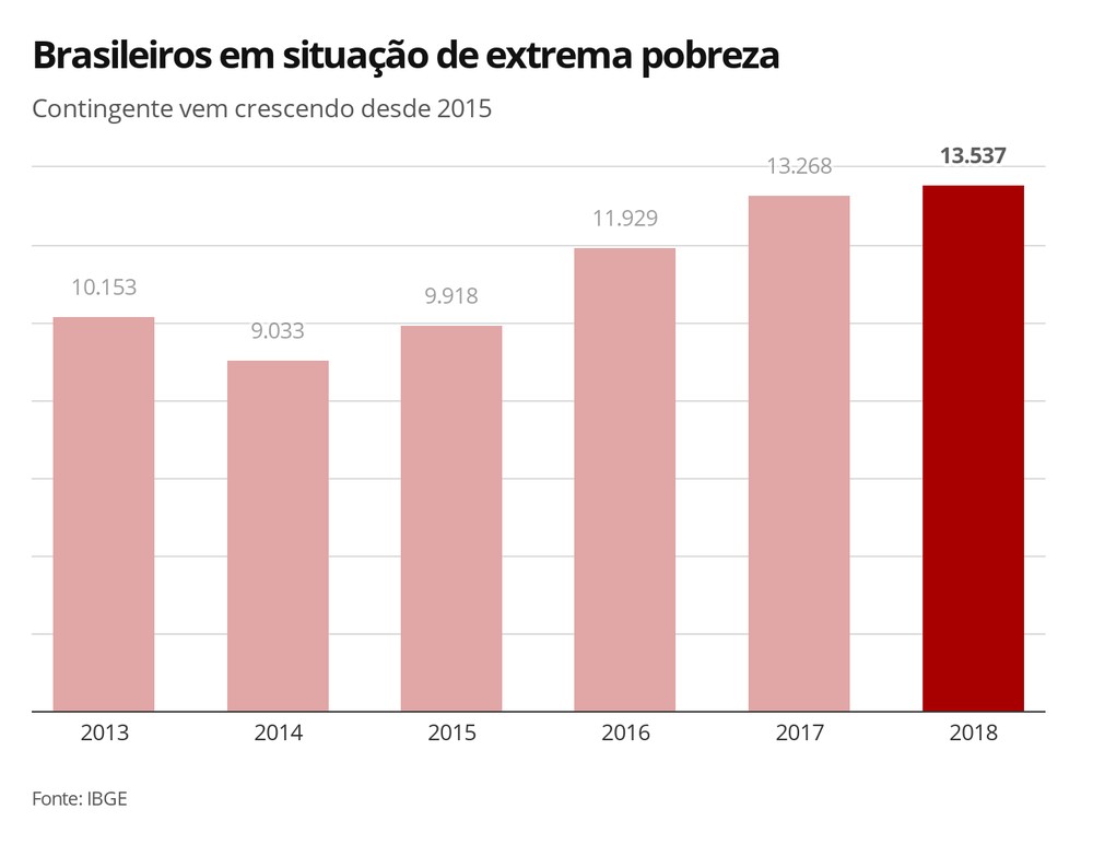 País chegou a 2018 com 13,5 milhões de pessoas em extrema pobreza, contingente maior que toda a população de países como Bélgica e Portugal. Metade vive no Nordeste.